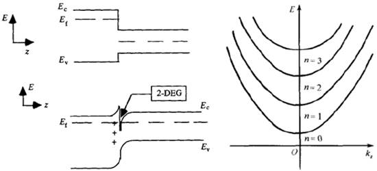 图2 二维电子气形成示意图 图3 能带在磁场中的量子化