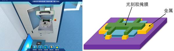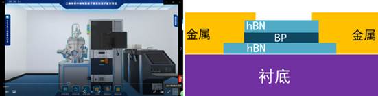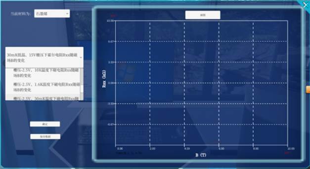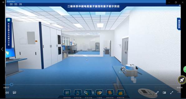 本实验利用虚拟仿真技术,充分挖掘学院低维物理与器件、量子物理与量子调控研究团队的科研成果,以教师科研及文献资料相关数据为基础,开发了运用电子束曝光系统、反应离子刻蚀系统、电子束蒸发镀膜系统、低温强场测量系统研究二维体系量子效应的仿真实验,使这些无法对本科生开设的经济和时间成本极高的项目得以以虚拟的形式向本科生开放。本实验综合运用量子力学、固体物理、半导体物理等方面的物理原理与低温强场下的实验技术,利用高端测试设备,可实现在50 mK—室温范围内对器件的磁电阻、霍尔电阻进行测量,实验提供多种不同性质的仿真样品供学生选择,并进行微纳器件的加工制作及器件的磁电阻SdH量子振荡、量子霍尔效应特性测试等。本仿真实验流程图(图11)和实验室场景图(图12)如下所示: